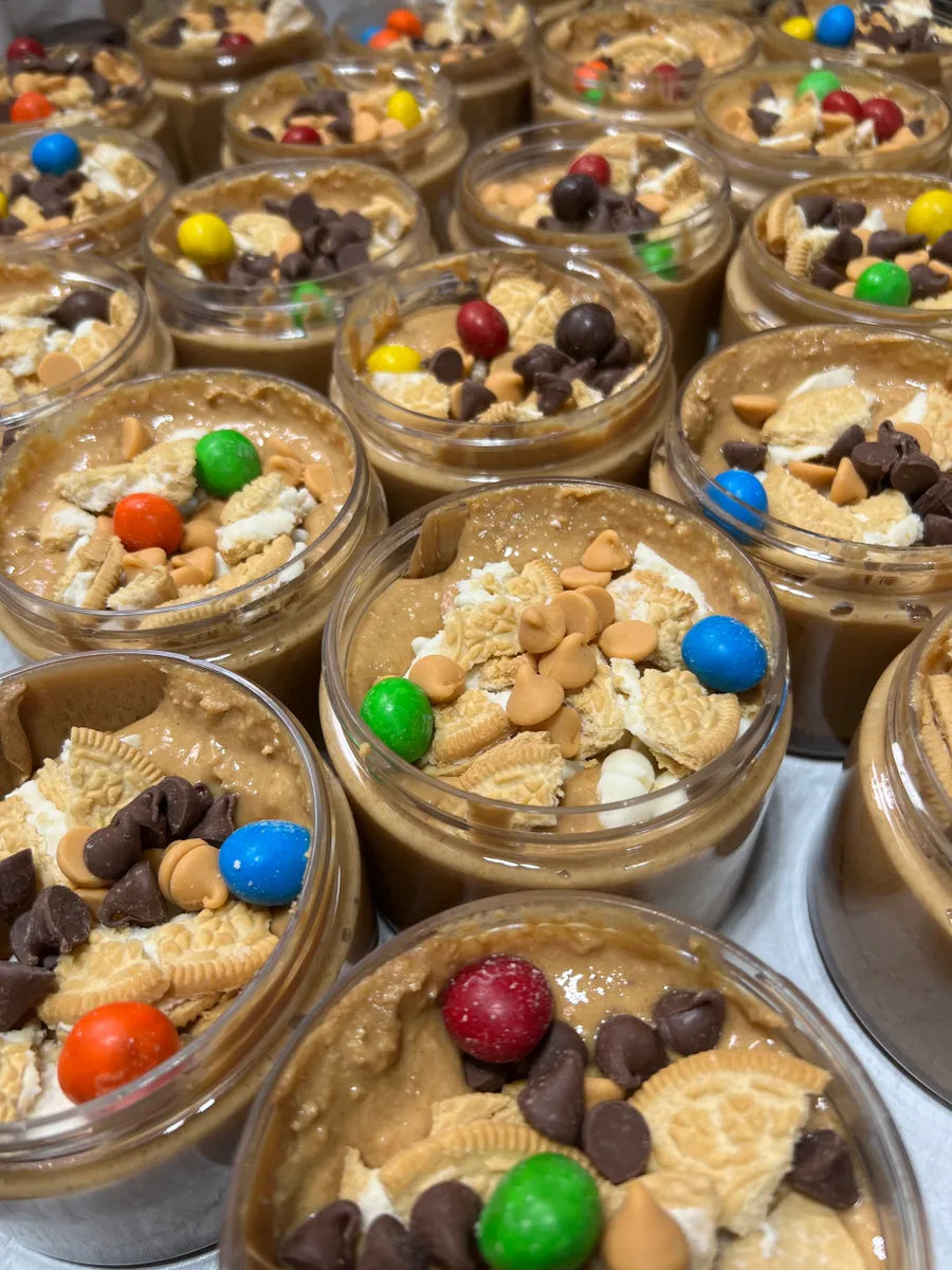 Introducing "Lava Java," a delectable any time of the day delight designed to elevate your day. Indulge in a harmonious blend of caramel sauce, coffee icing, honey roasted peanut butter, vanilla Oreo cookie crumbles, caramel cold brew M&M's, butterscotch, milk and cream cheese chips. Your taste buds will thank you. A customer favorite!